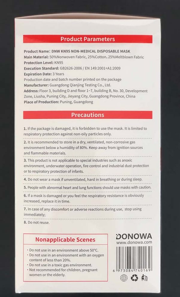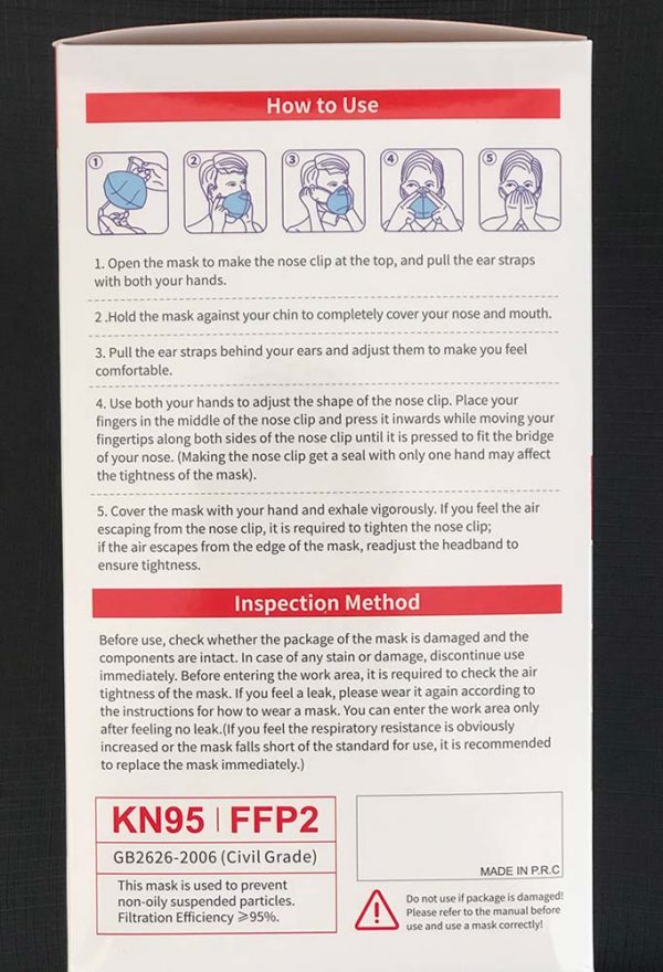 Nuestras mascarillas FPP2 KN95 SIN VÁLVULA DE EXHALACIÓN tienen las siguientes características: